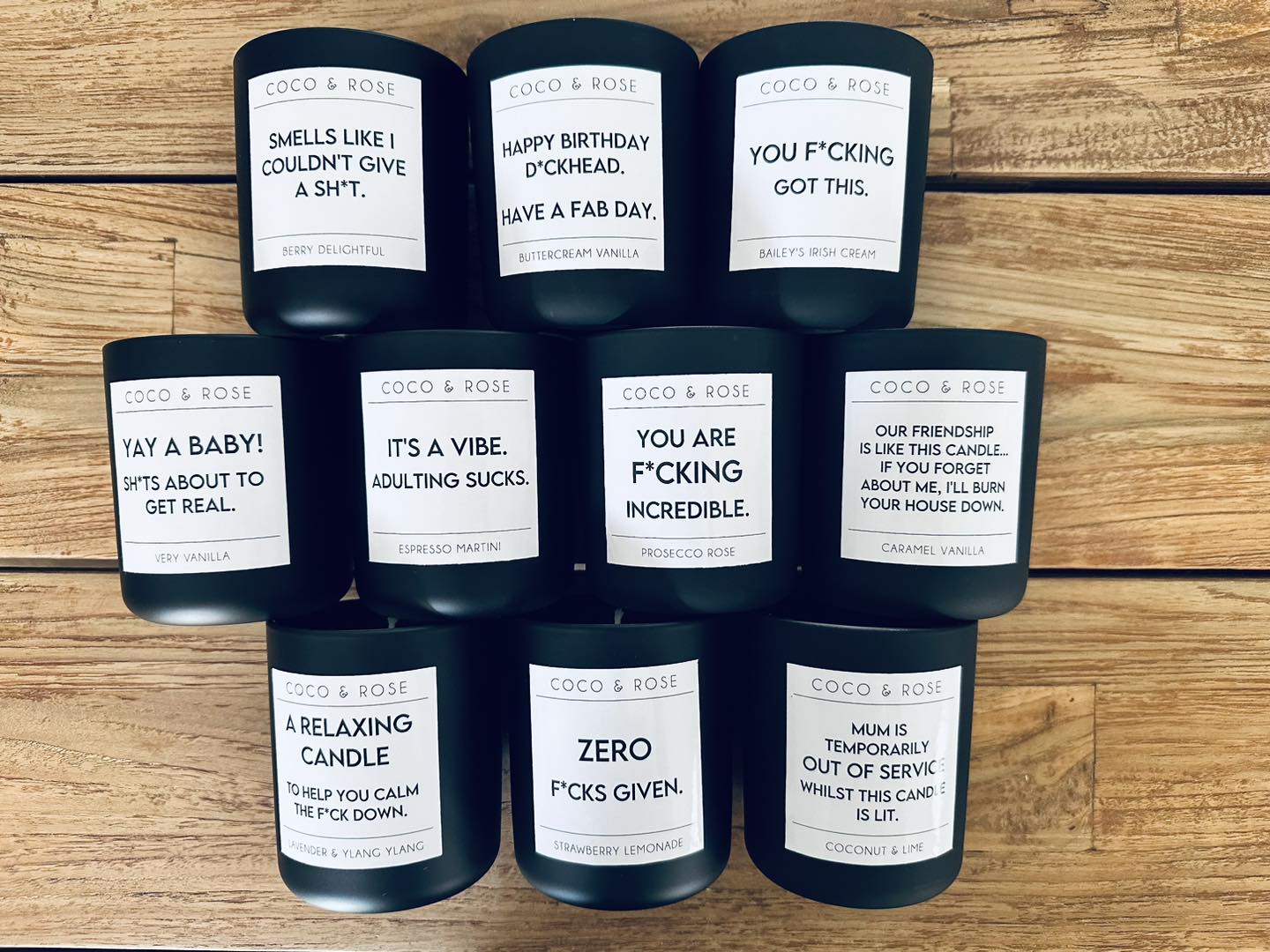 Made in our sleek matt black jars, these candles are sure to make any ones day! See below candle sayings.